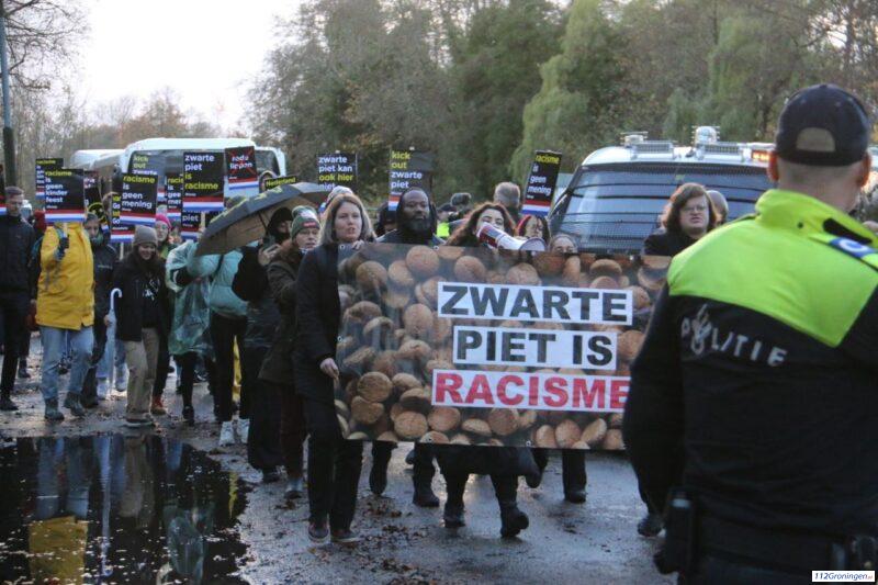 Slochteren – Kick out zwarte Piet heeft vanmiddag gedemonstreerd bij de intocht van Sinterklaas in