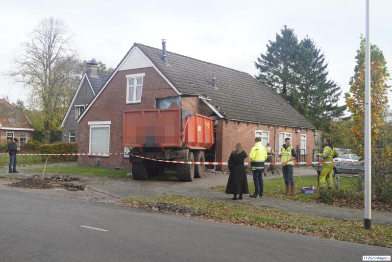 Kiepwagen van trekker rijdt woning binnen in Onstwedde (Video)