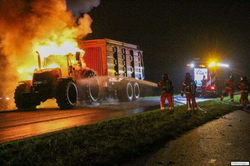 Felle brand verwoest tractor in Winschoten