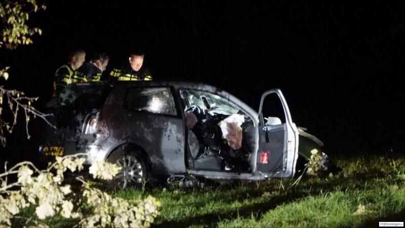 Auto raakt van de weg bij Marum, twee gewonden (Video)