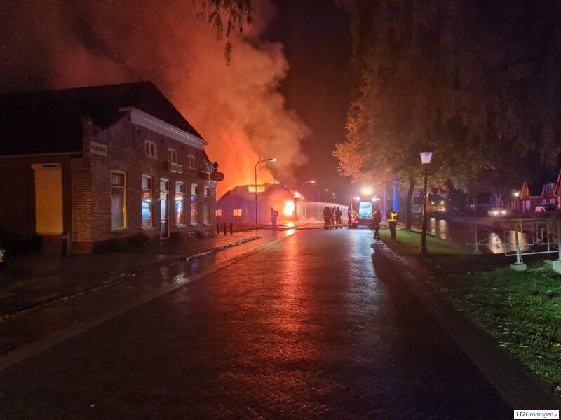 Uitslaande brand verwoest leegstaand pand in Oude Pekela, vermoedelijk brandstichting (Video)