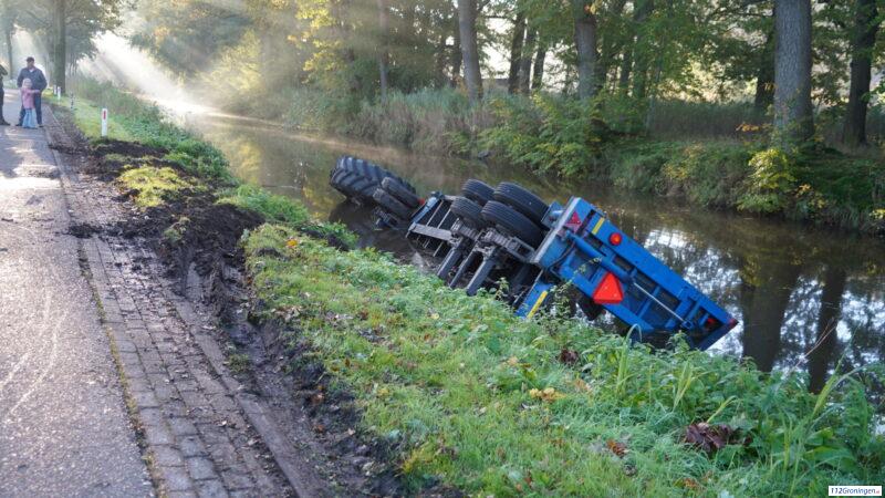 `Trekker met dieplader` te water na ongeval met busje in Slochteren
