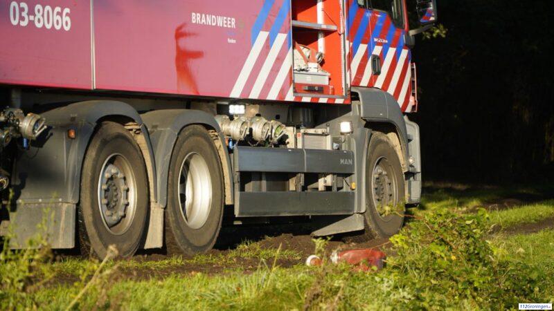 Brandweerwagen muurvast bij dakbrand in Nieuw-Roden (2x Video)