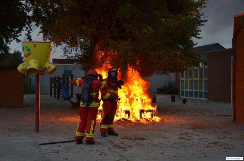 Forse buitenbrand bij OBS Menterhorn in Muntendam