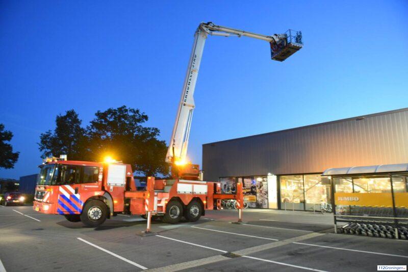 Grote brandweer inzet bij Jumbo in Leek na rookwolk vanaf het dak