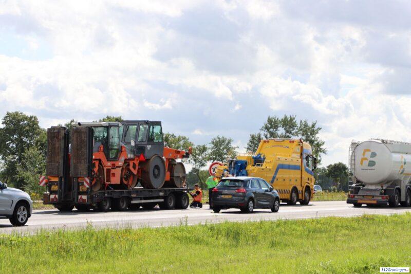 Boerakker – Op de A7 bij Boerakker richting Drachten is woensdagmiddag een dieplader met twee