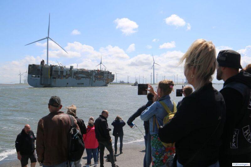 Eemshaven – De Fremantle Highway trekt veel bekijks donderdagmiddag. Honderden auto`s staan in de haven