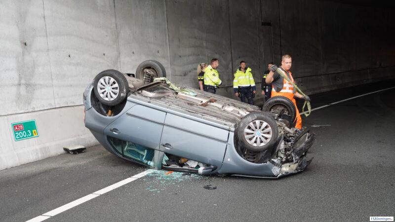 Auto belandt op de kop in tunnel bij Julianaplein (update)