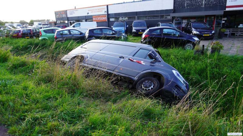 Foxhol – Op de Energieweg in Foxhol is vrijdag een busje in de sloot beland.