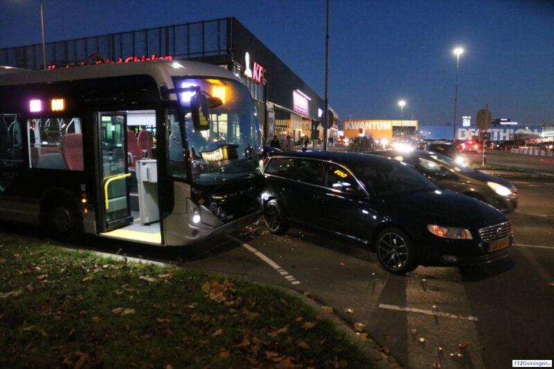Ongeluk tussen een stadsbus en auto op de Sontweg in Groningen
