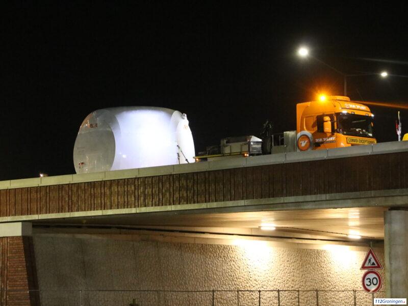 Groningen- Op de N7 stond dinsdagavond een vrachtwagencombinatie(groot transport) stil met een onderdeel van een