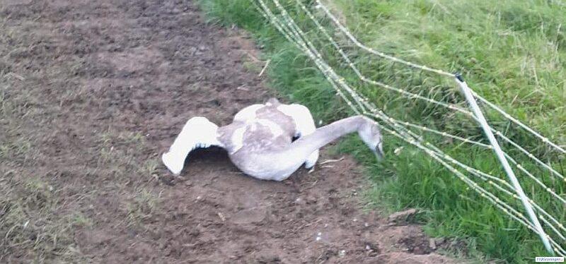 Groningen – De dierenambulance heeft eerder deze week geprobeerd twee zwanen te redden, die vast
