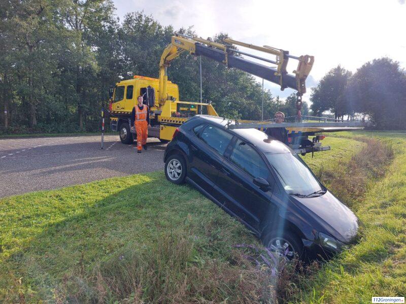 Marum – Een auto is vrijdagmiddag in de greppel bij carpoolplaats aan de A7 bij