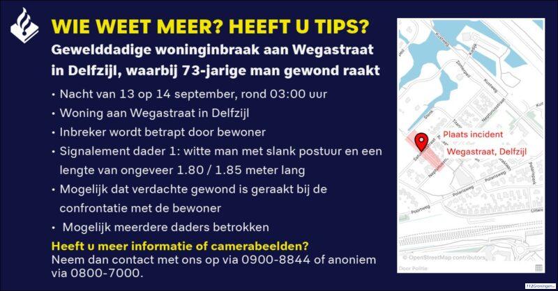 Politie vraagt hulp bij onderzoek naar gewelddadige woninginbraak Delfzijl