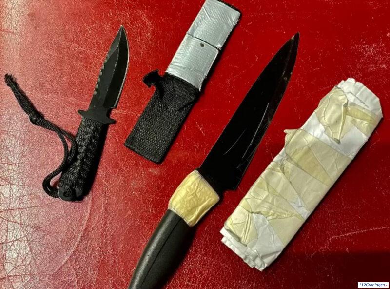 Groningen – Dankzij oplettende burgers zijn twee jeugdigen deze messen kwijtgeraakt, aldus de politie via