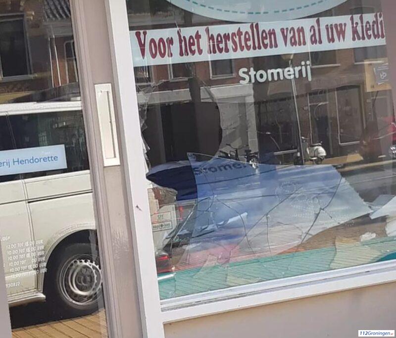 Groningen – Een man heeft woensdag op klaarlichte dag een raam van kledingreparatie Zuiderdiep met