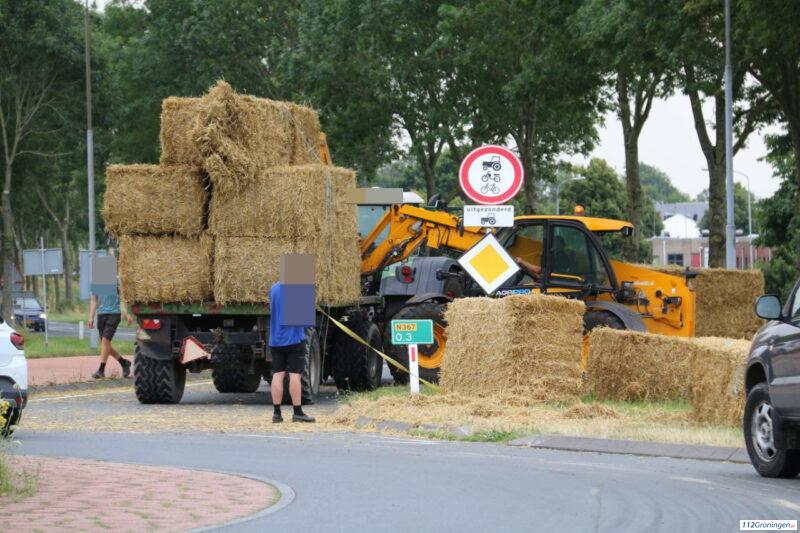 Trekker verliest strobalen op rotonde bij de N367