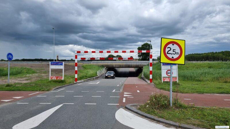 Groningen- Bij het viaduct aan de Olgerweg waar regelmatig busjes onder vast zitten heeft de