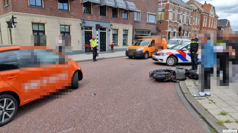 Auto en scooter botsen op de Zuiderweg in Hoogkerk, drukte in Hoogkerk