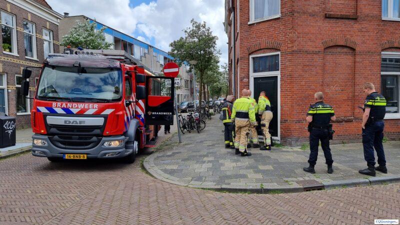 Groningen – Brandweerlieden hebben zaterdagmiddag de voordeur van een woning in de Nieuwstraat moeten forceren