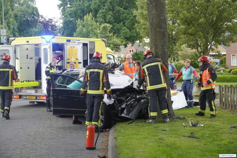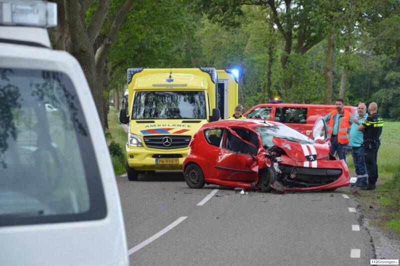 Auto botst tegen boom op de Sellingerstraat bij Ter Apel