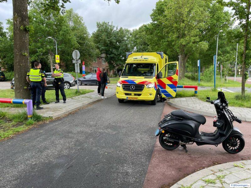 Stadskanaal – Op de Beatrixstraat is een scooterrijder achterop een geparkeerde auto gebotst. De scooterrijder