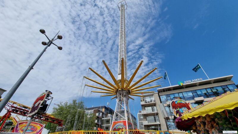 Groningen – De zweefmolen op de Grote Markt in de stad Groningen gaat ook op