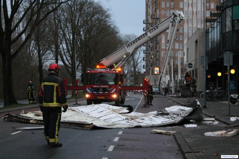 Groningen – De Groninger brandweer werd zaterdagochtend opgeroepen voor een melding van stormschade aan de