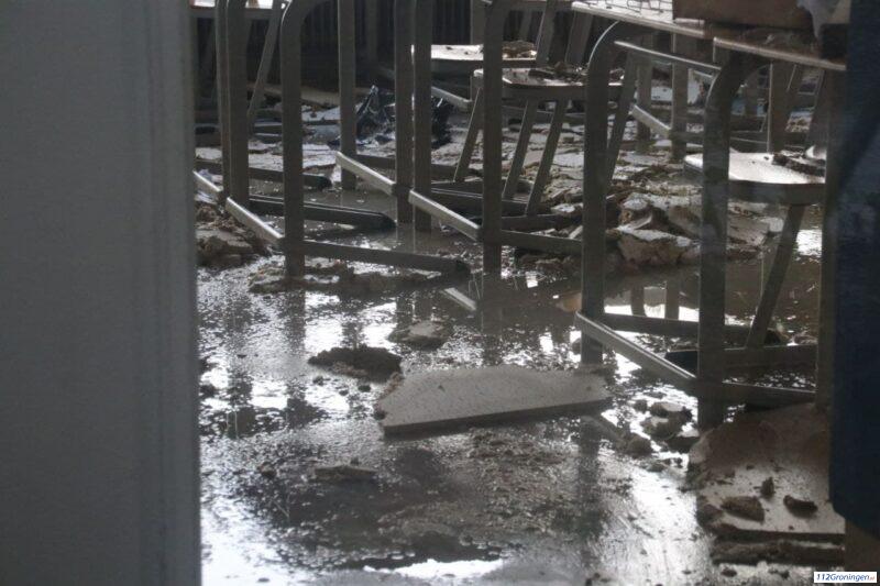 Dak waait van schoolgebouw Parcival College, grote waterschade (Video)