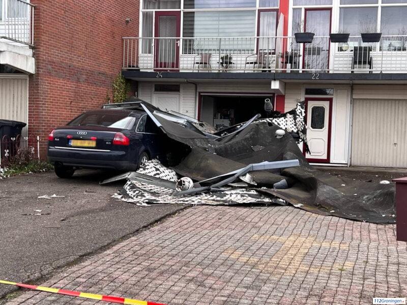 Groningen – Aan de Jacob Schorerstraat in Groningen zijn vrijdagnacht meerdere daken van woningen afgeblazen