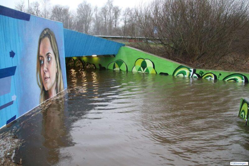Fietstunnel bij P+R Haren volledig onder water (Video)