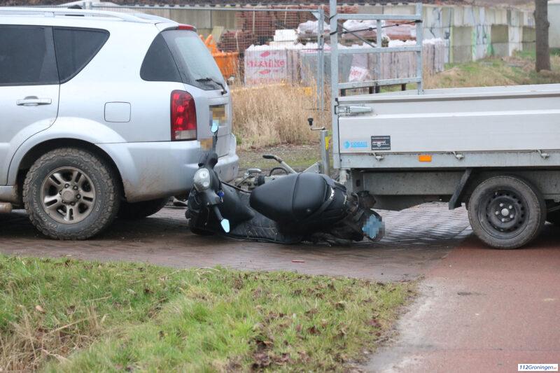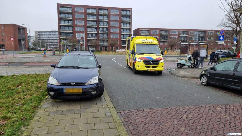 Scooterbestuurster tuimelt over motorkap bij botsing op Bedumerweg