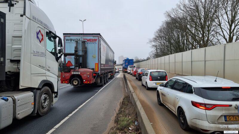 Groningen – Door een aanrijding op de N7 vlak voor het Julianaplein is een rijstrook