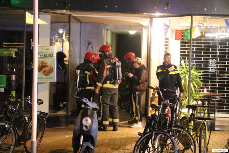 Brandweer rukt uit voor woningbrand aan de Oude Ebbingestraat in Groningen