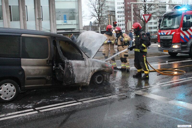 Auto brandt volledig uit op Emmaviaduct