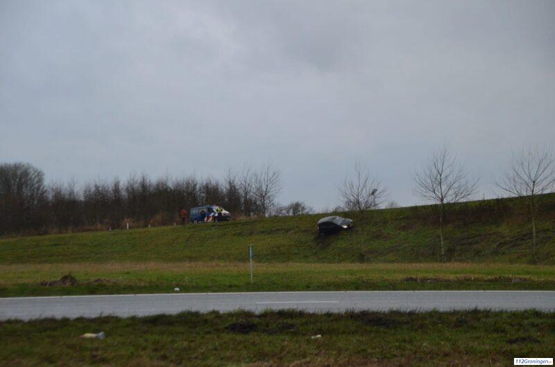 Veendam – Een automobilist is zondagochtend met zijn auto in de berm naast een oprit