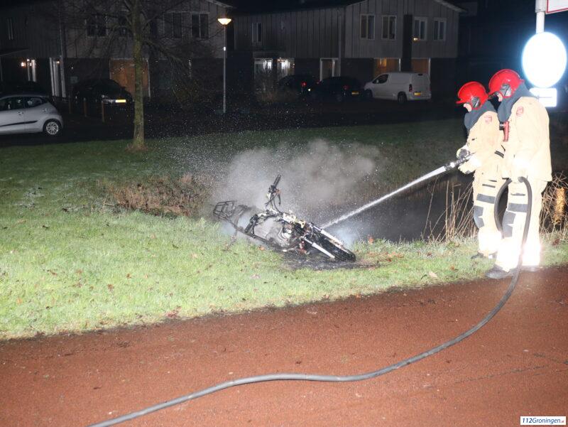 Scooterbrand Zuiderweg Hoogkerk snel geblust & oudejaarsavond met veel buitenbranden en brandweer en politie bekogeld