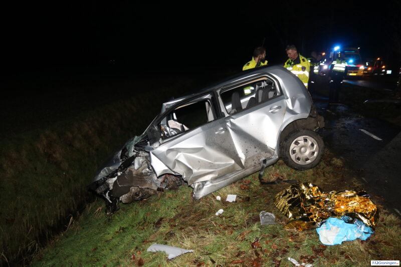 Auto botst tegen boom bij Wagenborgen, vier gewonden, 1 ernstig (Video)