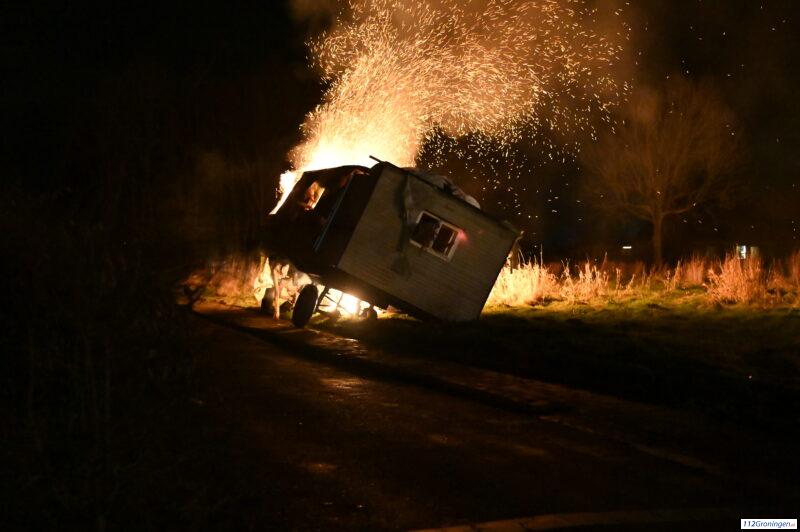 Keet in lichterlaaie op de Hoofdweg in Midwolda (Video)