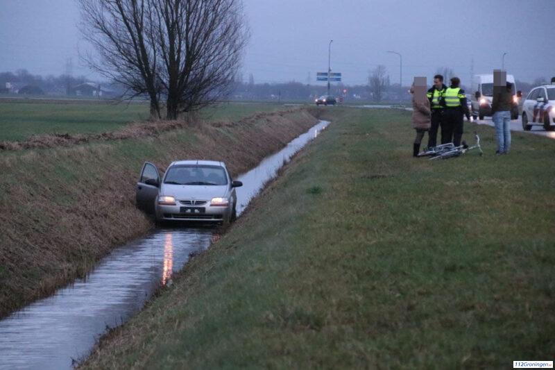 Oudejaarsdag: Auto raakt in de sloot bij Zuidhorn, inzittenden ongedeerd