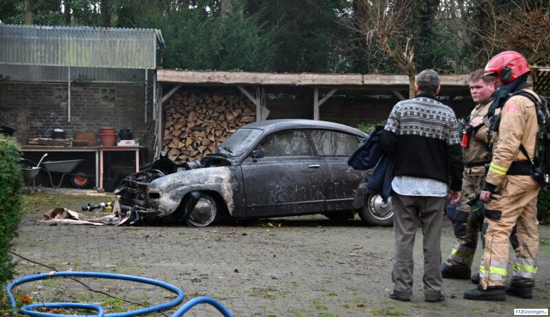 Middelbrand Hoofdweg Bellingwolde, auto uitgebrand