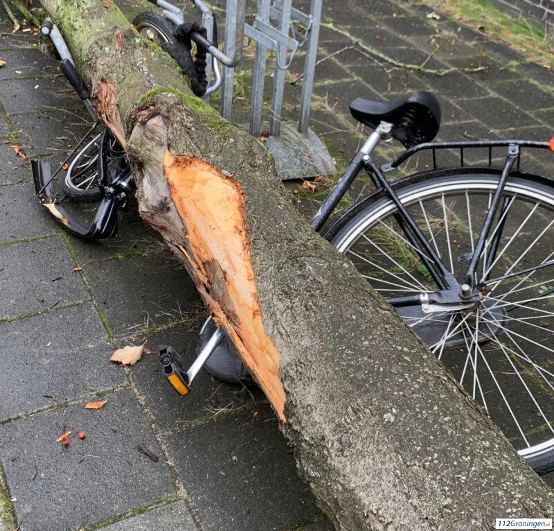 Groningen – Maandagmorgen om 09:45 heeft een bestelbus(wit) een grote boom omver gereden in de