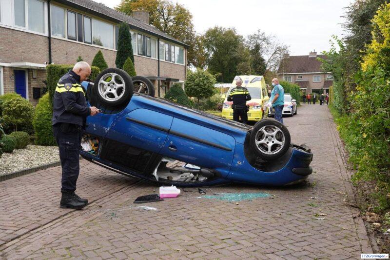 Paterswolde – Aan de A.G.H. Fokkerweg is zondagmiddag een auto over de kop geslagen midden