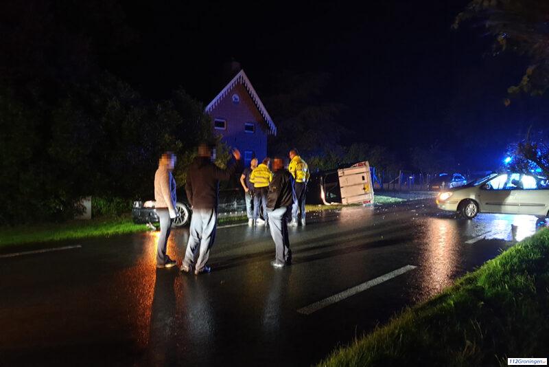Paardentrailer belandt op zijkant bij ongeval in Bellingwolde