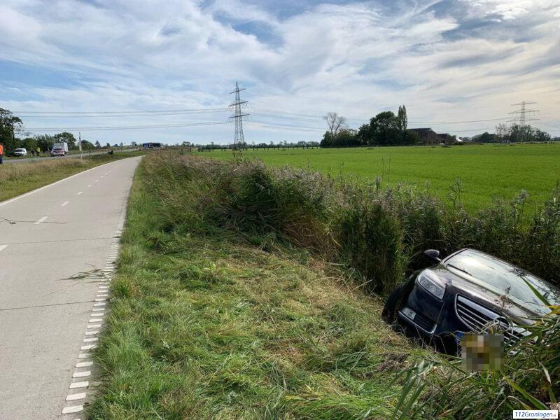 Auto belandt in sloot na aanrijding op Friesestraatweg Aduard