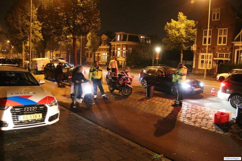 Motorrijder knalt op personenauto op Petrus Campersingel in Groningen