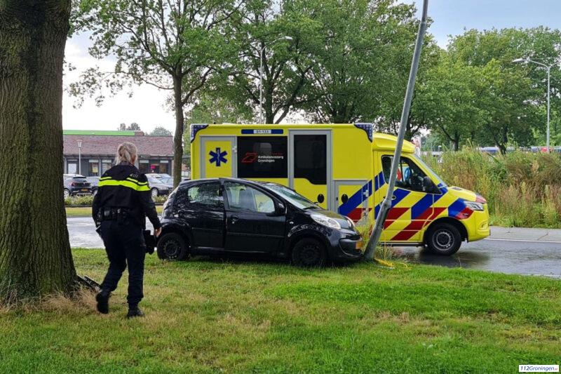 Automobilist botst tegen lantarenpaal in Veendam