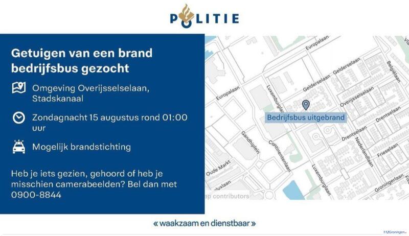 Afgelopen zondagnacht rond 01:00 uur is een bedrijfsbus volledig uitgebrand aan de Overijsselselaan in Stadskanaal.