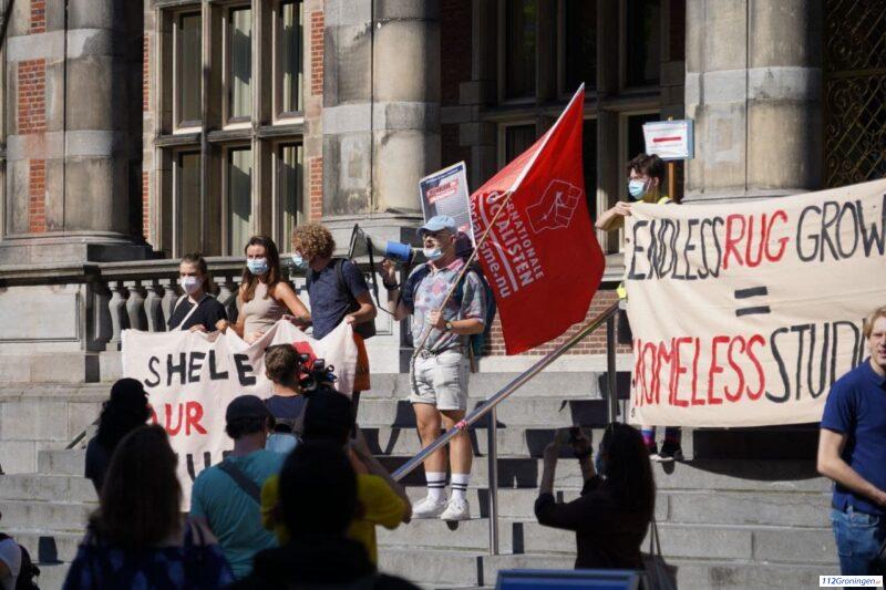 Groningen – Ongeveer honderd studenten hebben donderdag aan het begin van de middag de hal
