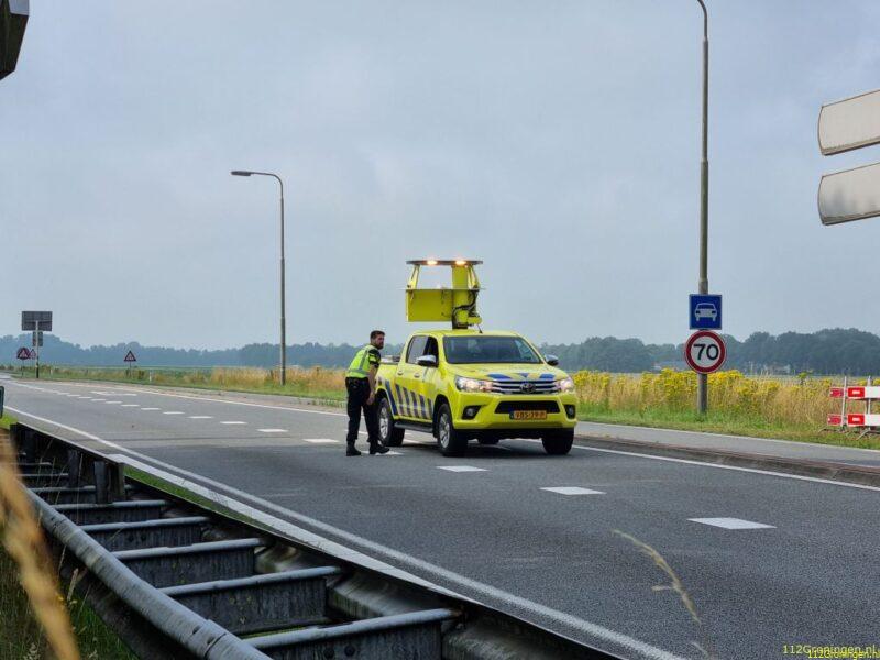 Team verkeer zagen op de A7, ter hoogte van Foxhol, een voertuig rijden waarvan de